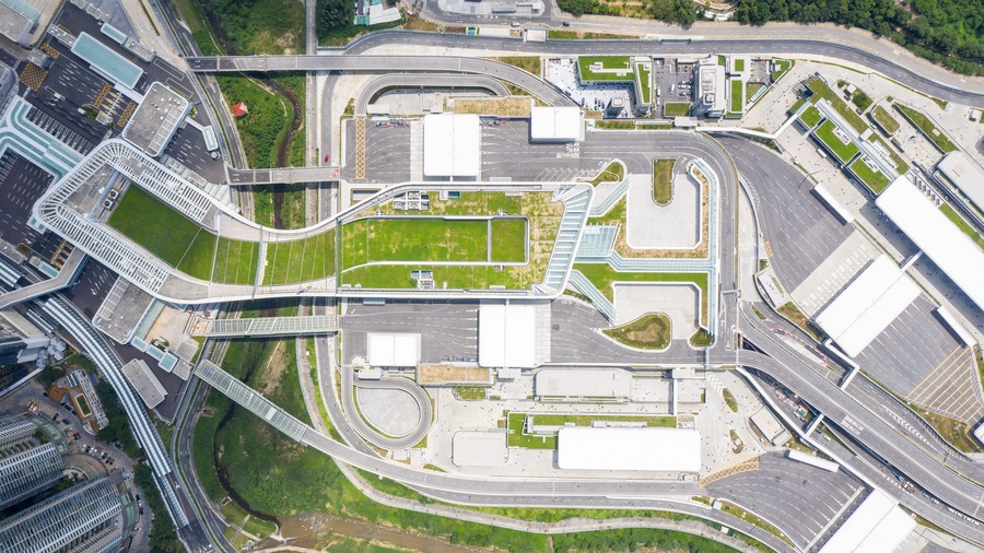 Aerial photo taken on Aug. 26, 2020 shows the Liantang Port/Heung Yuen Wai Boundary Control Point at the Hong Kong-Shenzhen boundary in south China. (Xinhua/Mao Siqian)