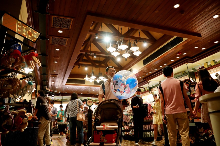 People shop at the Disneyland amusement park in Shanghai, east China, Sept. 29, 2020. (Xinhua/Fang Zhe)