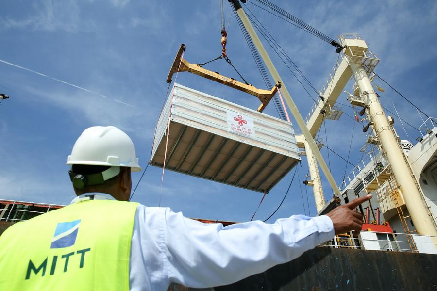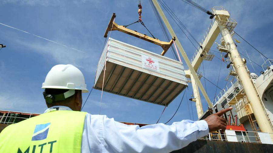 The 11th batch of emergency humanitarian aid supplies dispatched by the Chinese government arrives in Yangon, Myanmar, May 3, 2025. (Xinhua/Myo Kyaw Soe)