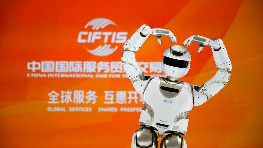 A robot poses during the 2024 China International Fair for Trade in Services (CIFTIS) at the China National Convention Center in Beijing, capital of China, Sept. 12, 2024. (Xinhua/Zou Guangping)
