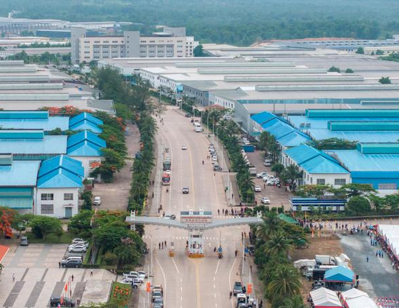 An aerial drone photo taken on May 22, 2025 shows the Sihanoukville Special Economy Zone (SSEZ) jointly ventured by Chinese and Cambodian companies in Sihanoukville, Cambodia. (Photo by Nitola/Xinhua)