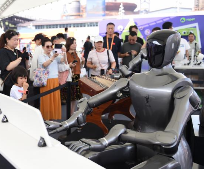 A humanoid robot plays piano at the 2025 China International Fair for Trade in Services (CIFTIS) in Beijing, capital of China, Sept. 11, 2025. (Xinhua/Liu Lingyi)