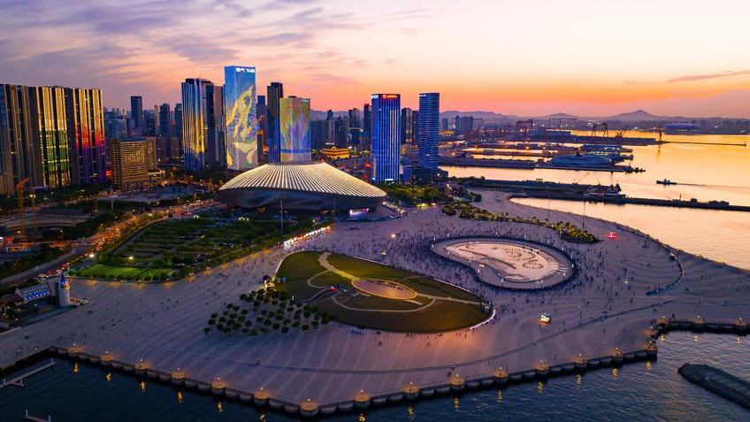 An aerial drone photo taken on June 3, 2023 shows the Dalian International Conference Center in Dalian, northeast China's Liaoning Province. (Photo by Piao Feng/Xinhua)