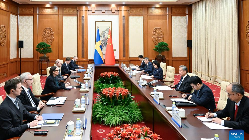 Wang noted that Sweden is an important country in the European Union (EU) and was the first Western country to establish diplomatic relations with the People's Republic of China, adding that the two countries should uphold their positioning as partners rather than rivals, and adhere to the principle of cooperation outweighing differences.