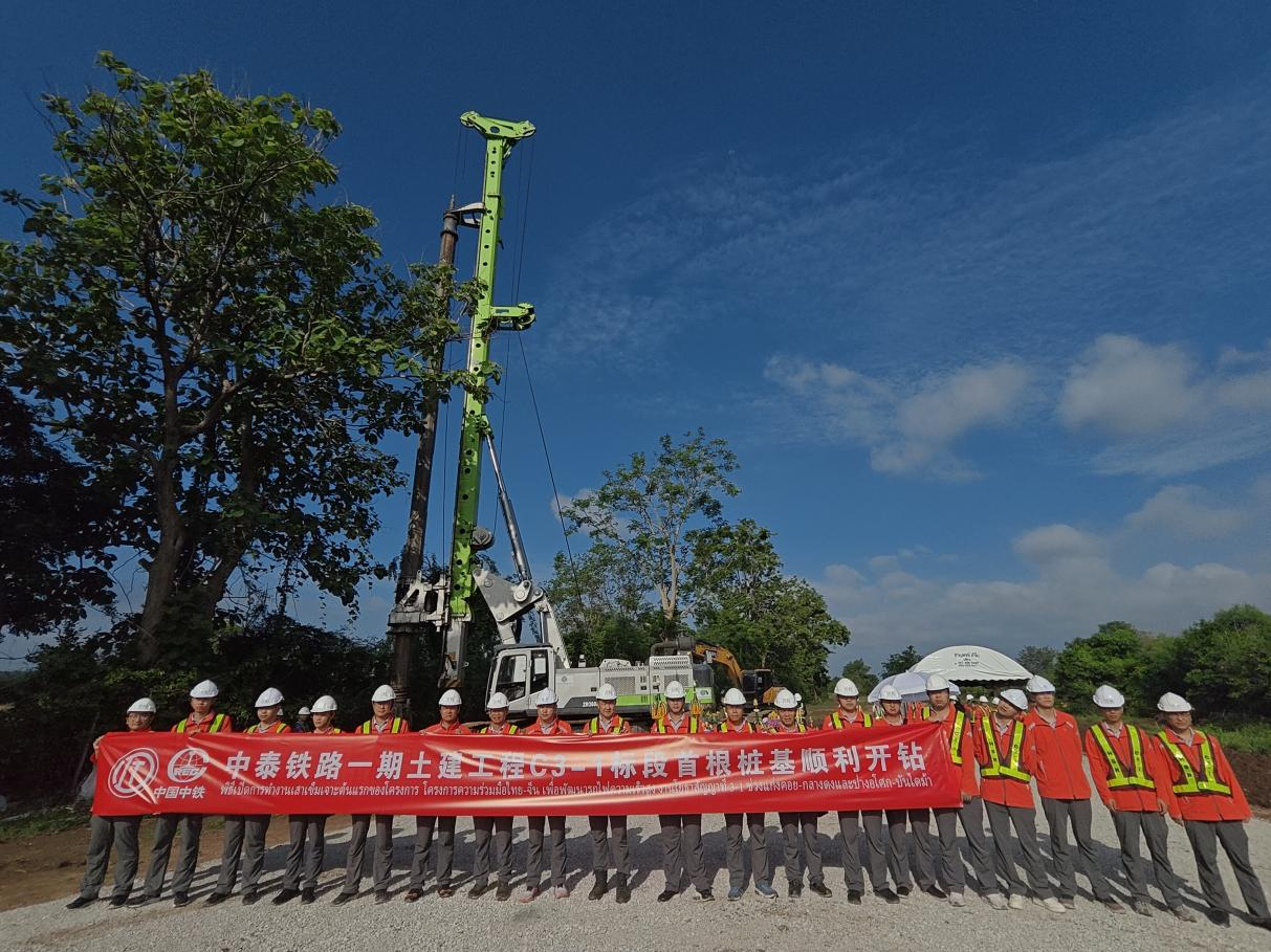 The picture shows the first-pile drilling ceremony of the C3-1 section of the first phase of the China-Thailand Railway. (Photo provided by ABC)