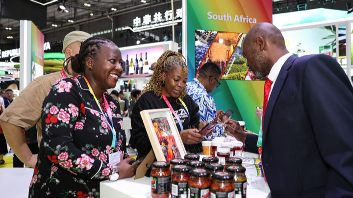 Visitors are consulting at the South Africa booth of the Fourth China-Africa Economic and Trade Expo, June 12, 2025. (Photo provided by Wang Jingqiang)
