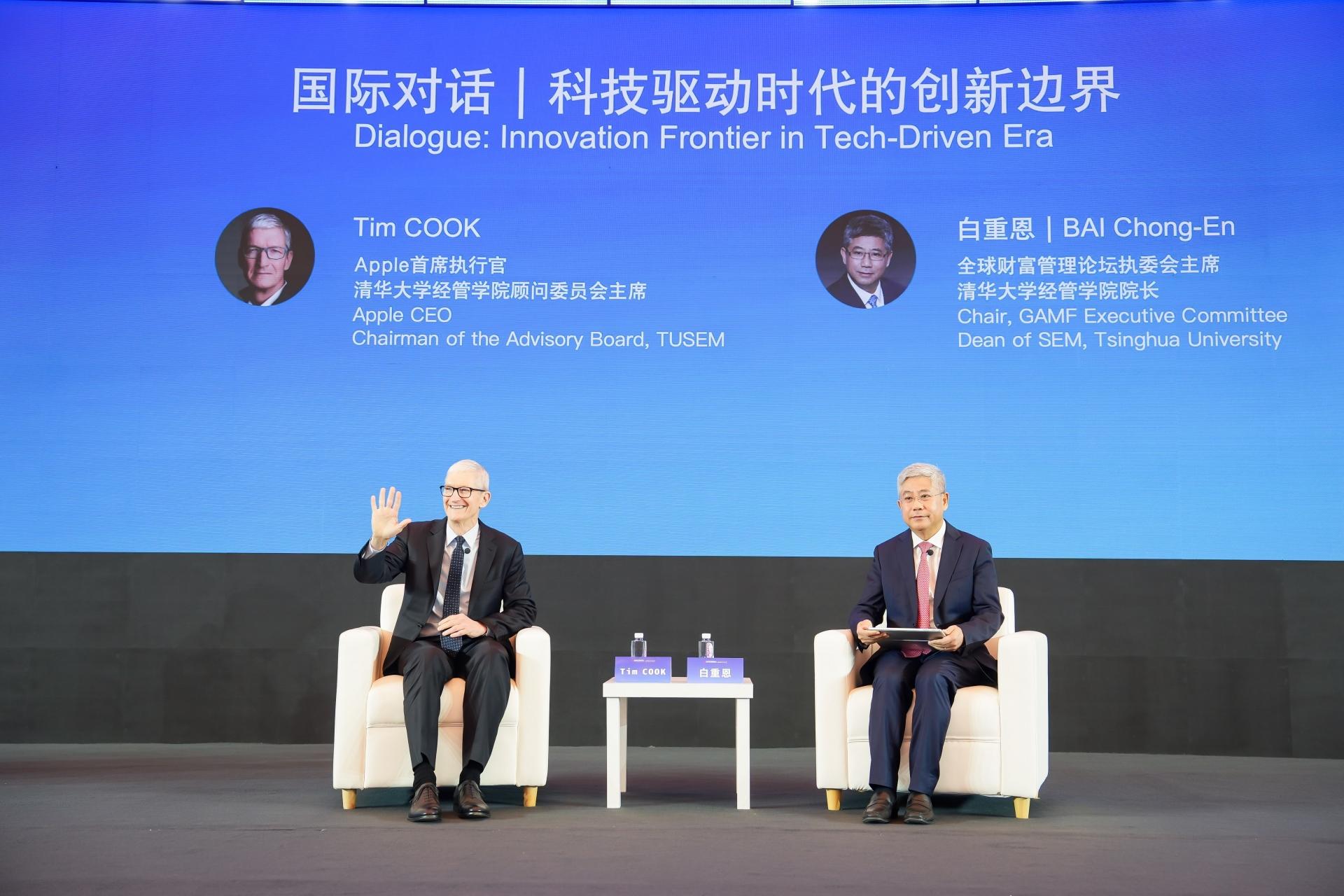Apple CEO Tim Cook and Bai Chong-En, Chair of the GAMF Executive Committee, explored how artificial intelligence and digital technology are transforming financial services and wealth management, highlighting key drivers of innovation in the sector.