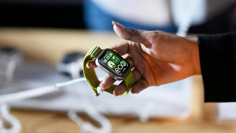A woman views the newly-released Huawei Watch Fit 4 Pro during a product launch event of Huawei in Mexico City, Mexico, May 21, 2025. (Xinhua/Li Muzi)