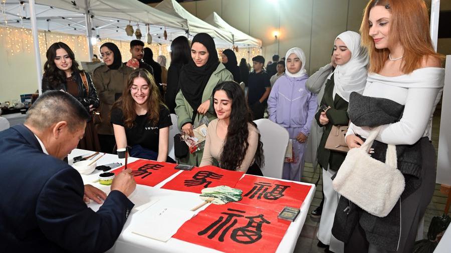 People attend the Chinese culture night event at the Chinese Embassy in Kuwait in Hawalli Governorate, Kuwait, Nov. 26, 2025. A Chinese culture night featuring food, music and Mandarin activities was held on Wednesday at the Chinese Embassy in Kuwait. (Photo by Asad/Xinhua)