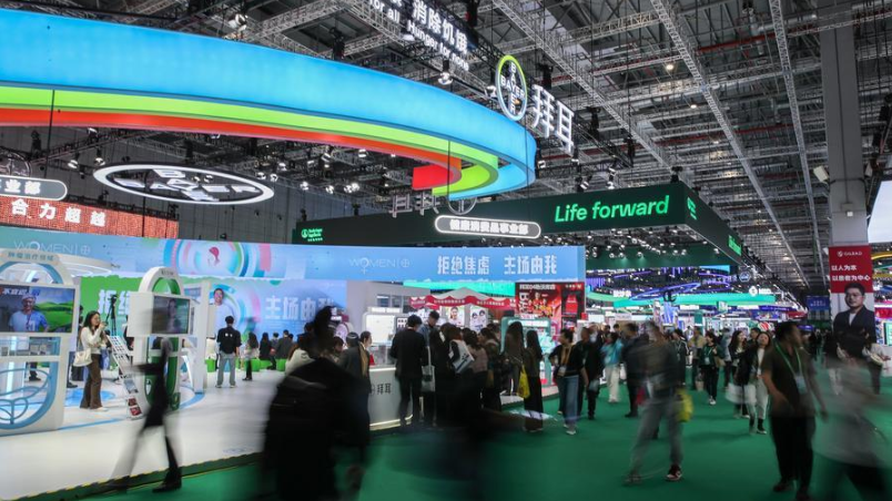 This photo taken on Nov. 8, 2024 shows the booth of Bayer at the Medical Equipment & Healthcare Products Exhibition Area during the 7th China International Import Expo (CIIE) in east China's Shanghai. (Photo by Chang Nengjia/Xinhua)