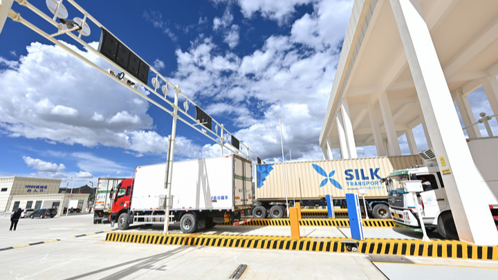 A truck passes through the checkpoint of the export cargo inspection area at the Xigaze International Land Port, July 16, 2025. (Xinhua)
