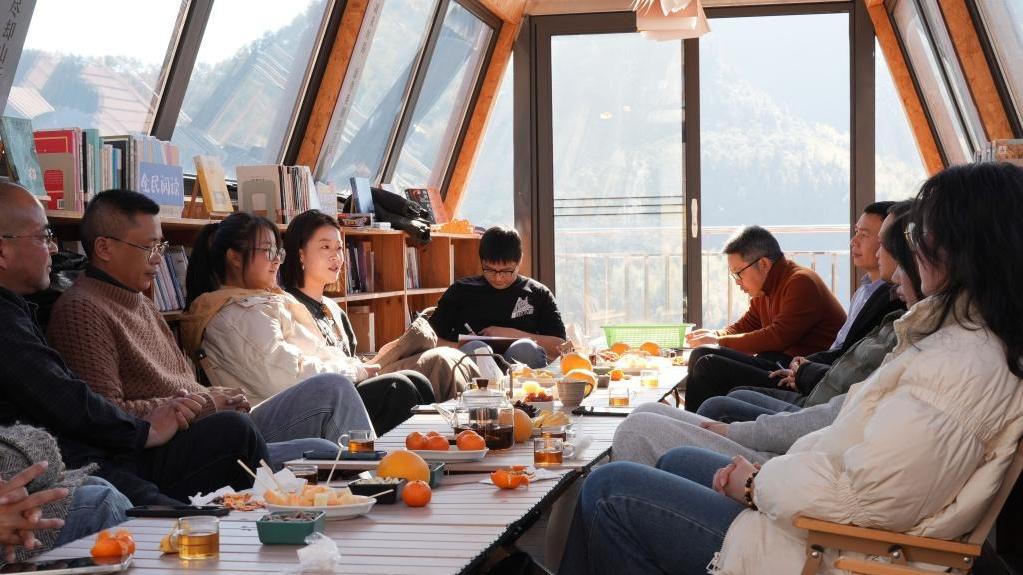 People take part in a cultural salon in Lulikeng Village of Changshan County, east China's Zhejiang Province, Jan. 14, 2026. Lulikeng Village has renovated its abandoned lime kilns into rural tourism facilities in recent years, turning the village into a destination for tourists from surrounding areas. Since 2024, various business sectors in the village have enabled over 150 villagers to find jobs right at their doorstep, and increased the village's income by more than 6 million yuan (about 0.86 million U.S. dollars). (Xinhua/Weng Xinyang)