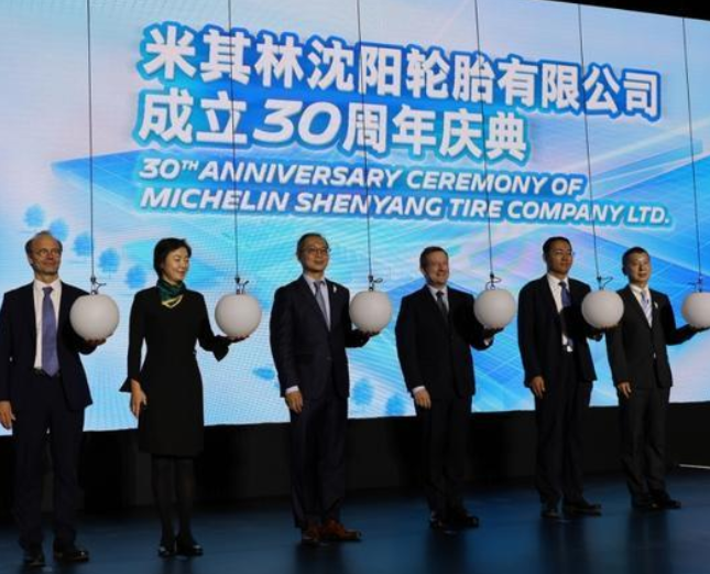 This photo taken on Sept. 24, 2025 shows the 30th anniversary ceremony of Michelin Shenyang Tire Company Ltd. in Shenyang, northeast China's Liaoning Province. (Xinhua/Han He)
