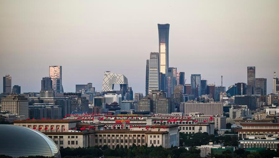 This photo taken on Sept. 2, 2024 shows the skyline of the central business district (CBD) at dusk in Beijing, capital of China. (Xinhua/Wang Jianhua)