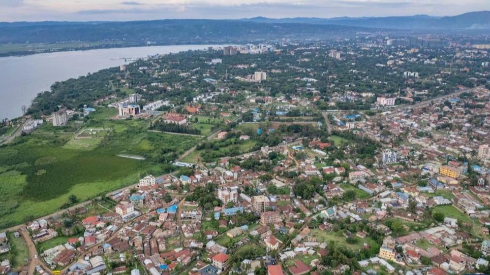 An aerial drone photo taken on Feb. 27, 2026 shows a view of Kisumu, a key economic and transport hub in western Kenya. Located in Kisumu County, a key economic and transport hub in western Kenya, the area is well known for sugarcane cultivation and sugar production. A road project undertaken by Power Construction Corporation of China (PowerChina) is now bringing visible change to the region. (Xinhua/Xie Jianfei)
