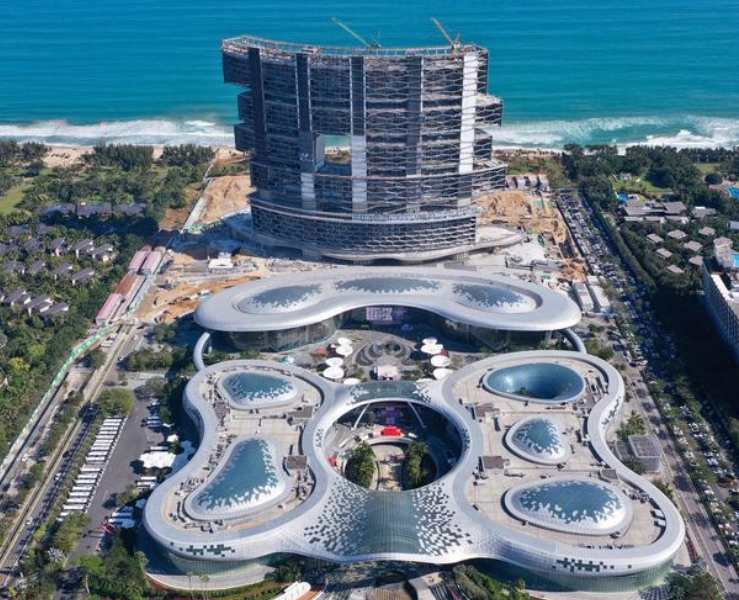 An aerial drone photo taken on Jan. 10, 2026 shows a view of the Sanya International Duty Free City in Sanya, south China's Hainan Province. (Xinhua/Guo Cheng)