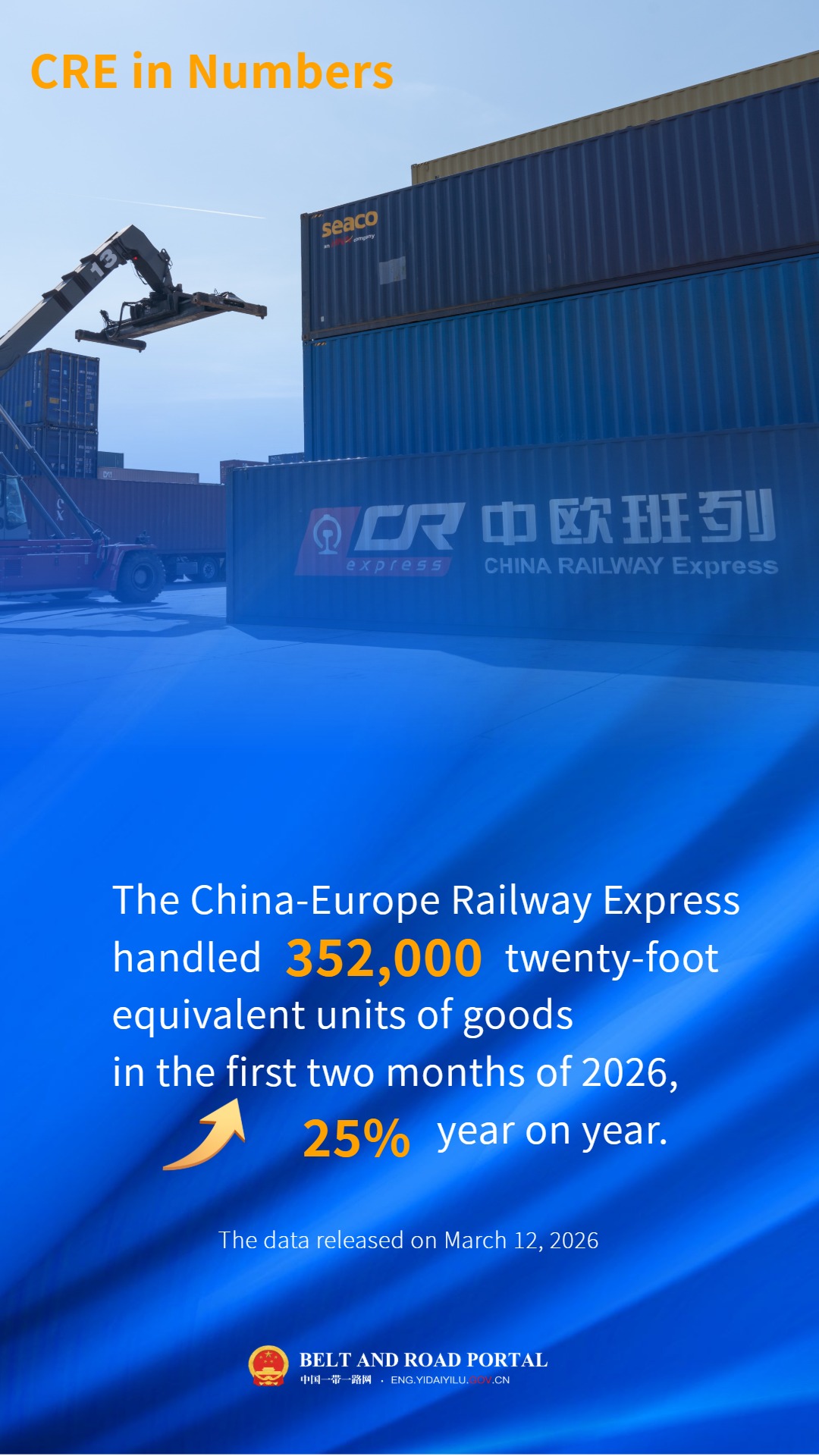 Abstract : The China-Europe Railway Express handled 3,501 freight trips in the first two months of this year, carrying 352,000 twenty-foot equivalent units of goods, up 32 percent and 25 percent year on year, respectively, according to data released on Thursday by China State Railway Group Co., Ltd.