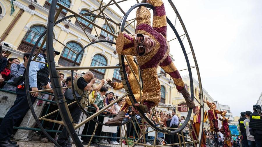 Organized by the Cultural Affairs bureau of the Macao Special Administrative Region government and others, this year's parade embodied the concept of "love, peace and cultural integration," gathering performing groups from at home and abroad to sing and dance in dazzling costumes through the urban streets.