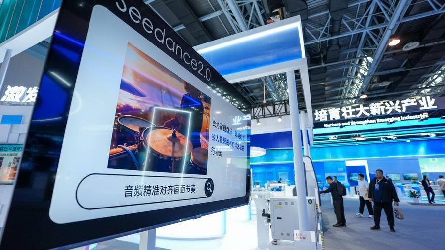 The large video generation model Seedance 2.0 is displayed at the permanent exhibition at the Zhongguancun Exhibition Center in Beijing, capital of China, March 25, 2026. (Xinhua/Ju Huanzong)