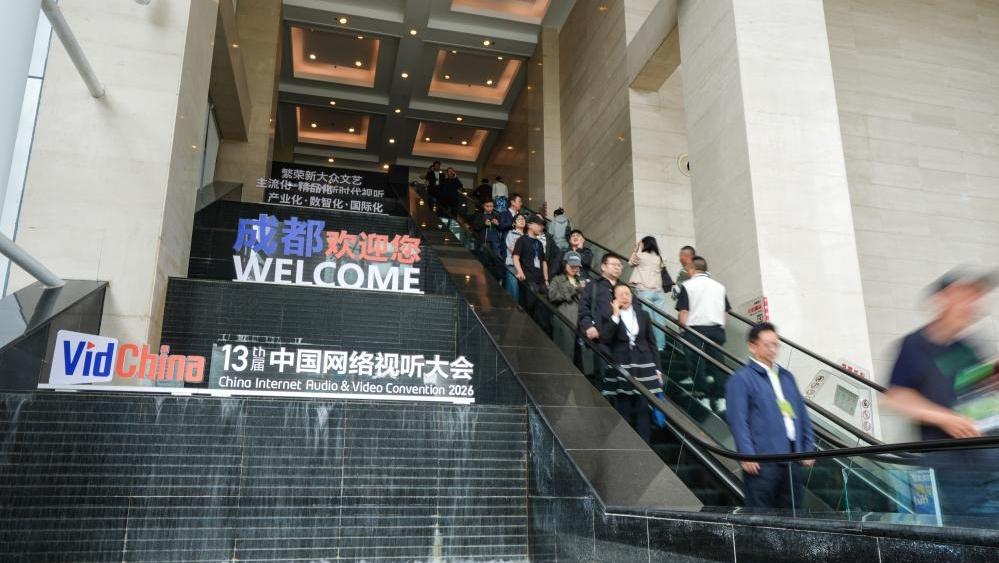People visit the 13th China Internet Audio and Video Convention in Chengdu, southwest China's Sichuan Province, April 15, 2026. The convention kicked off here on Wednesday, featuring a series of thematic forums, release events, film screenings and other activities. (Xinhua/Wang Xi)