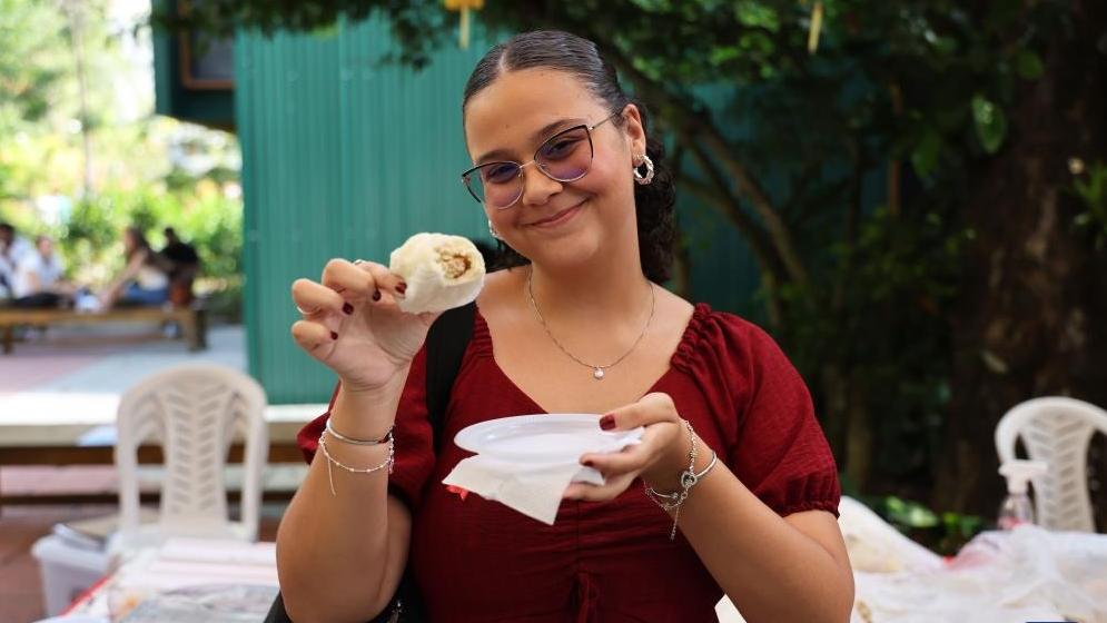 A Brazilian student tastes Chinese food during a celebration event marking the International Chinese Language Day in Rio de Janeiro, Brazil, April 15, 2026. Themed "Chinese: Sparking Colorful Dreams," the celebration event marking the International Chinese Language Day was held at the Pontifical Catholic University of Rio de Janeiro in Brazil on Wednesday, attracting a large number of spectators to experience the charm of Chinese language. (Xinhua/Jin Haoyuan)