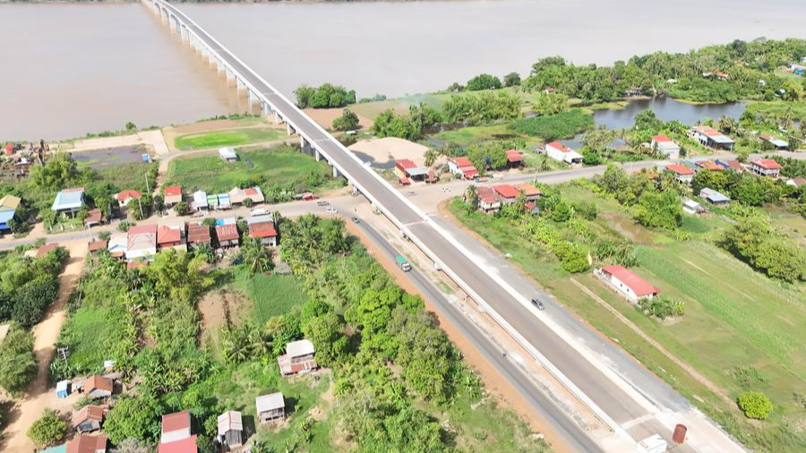 Locals thrilled with construction of China-funded Mekong River bridge in NE Cambodia nearing completion
