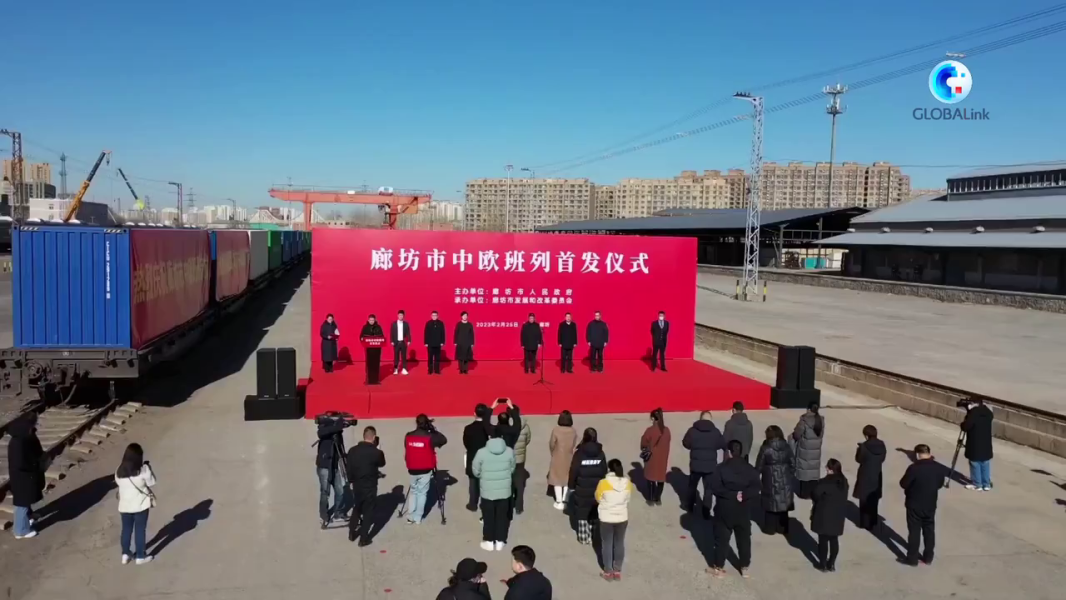 The city of Langfang in north China's Hebei Province saw its first China-Europe freight train leave the station Saturday.