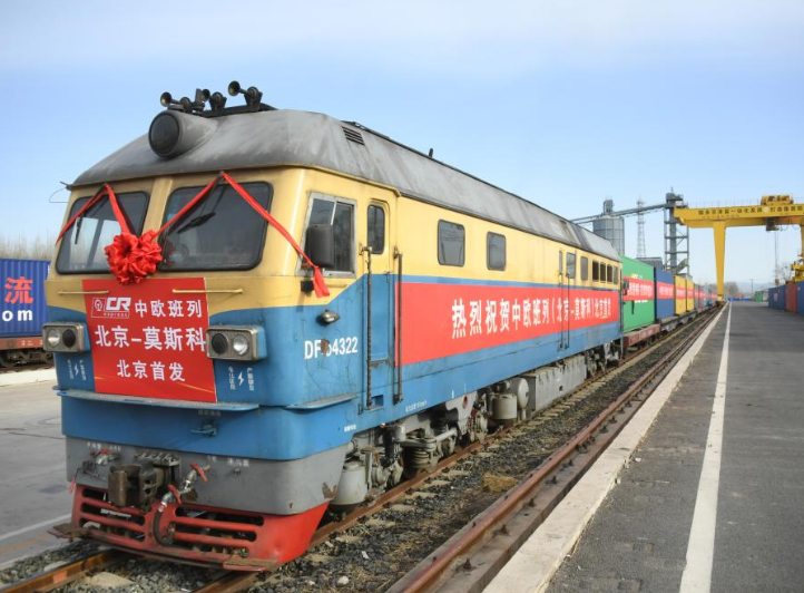 A cargo train loaded with 55 containers left Beijing Thursday morning for the Russian capital Moscow, marking the launch of the first direct China-Europe freight train service from the Chinese capital.