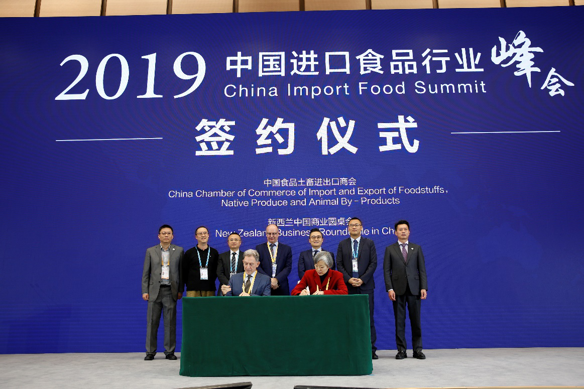 New Zealand Business Roundtable in China (NZBRiC) and China Chamber of Commerce of Import and Export of Foodstuffs, Native Produce and Animal By-Products (CFNA) signed a strategic cooperation agreement on building a China-New Zealand Food and Agricultural Products Trade Service Platform.