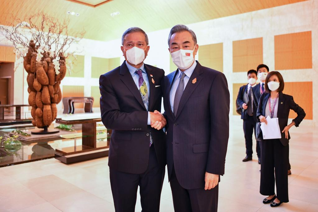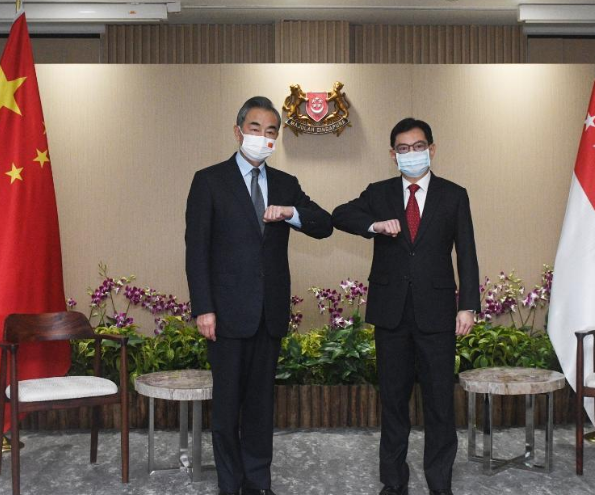 Chinese State Councilor and Foreign Minister Wang Yi met here with Singaporean Foreign Minister Vivian Balakrishnan on bilateral ties and cooperation.