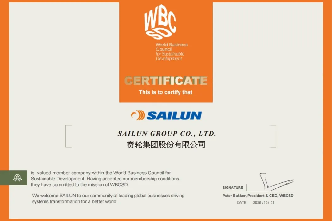 China's leading tyre manufacturer Sailun Group Co., Ltd. has been granted the certificate of membership in the the World Business Council for Sustainable Development (WBCSD).